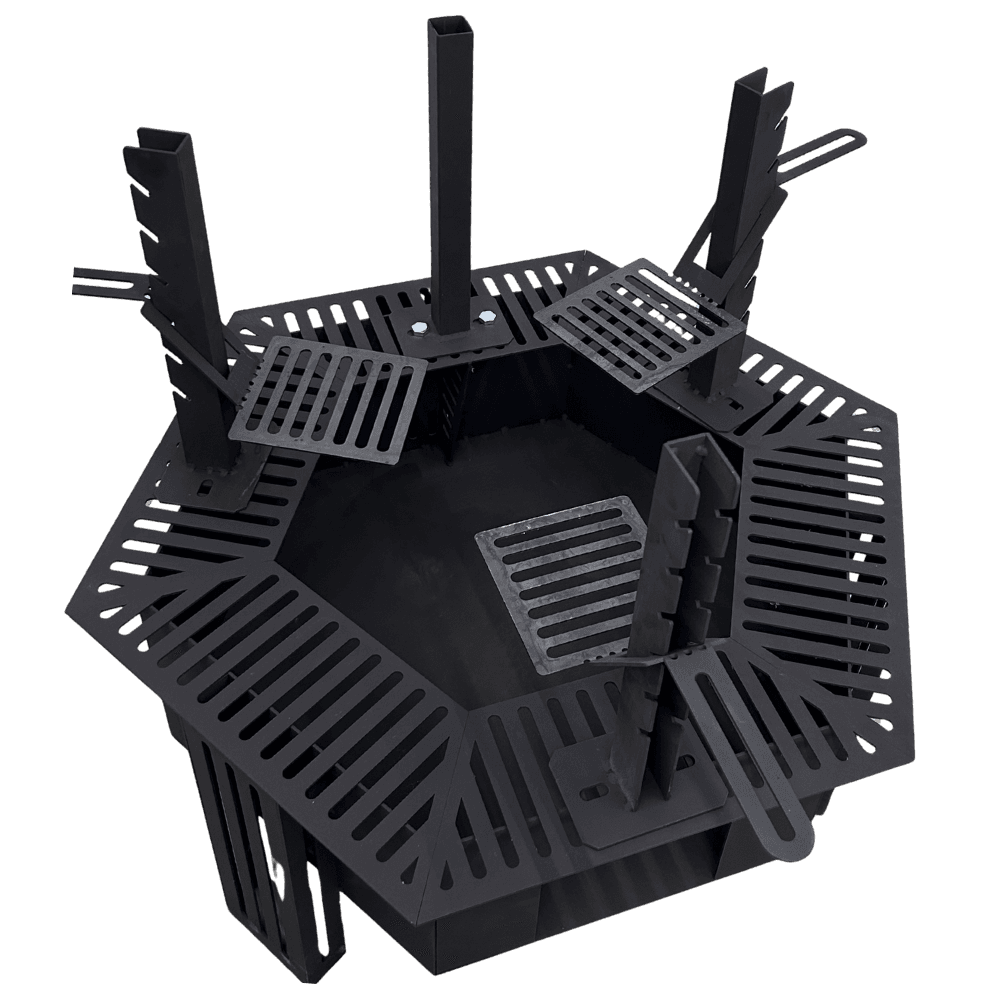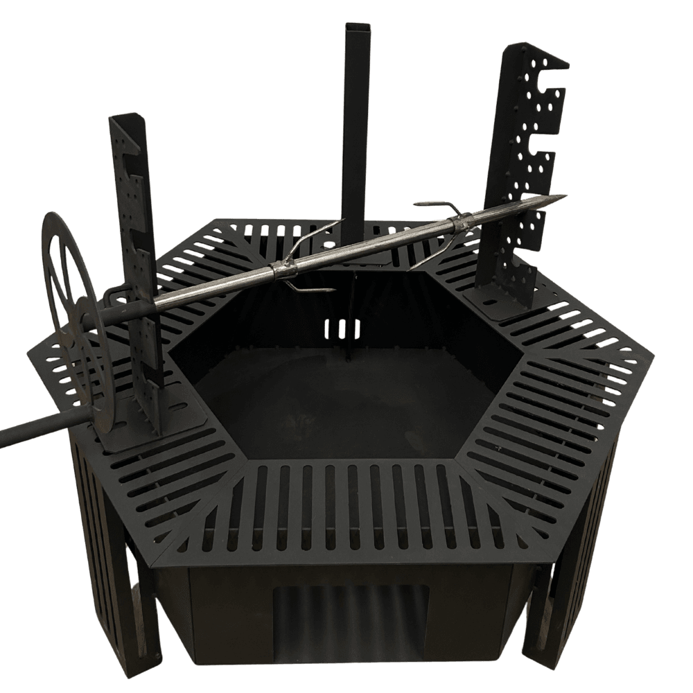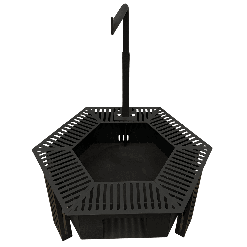 A 3 az 1-ben kültéri főzőhely igazi különlegessége a sokoldalúságában rejlik. Egyetlen készülékben találkozik a klasszikus grill, a hagyományos szalonnasütő és a stabil bográcstartó, így bármilyen ételt elkészíthetsz rajta – a ropogós grillhúsoktól kezdve a szaftos pörköltökig és a hangulatos szalonnasütésekig. A kb. 100 cm átmérőjű, hatszögletű acélszerkezet egyedi megjelenést biztosít, és elegendő helyet kínál arra, hogy egyszerre többen is kényelmesen használják. Ez a multifunkciós kültéri főzőállomás ideális választás nagyobb társaságok, családi események vagy baráti összejövetelek számára is.