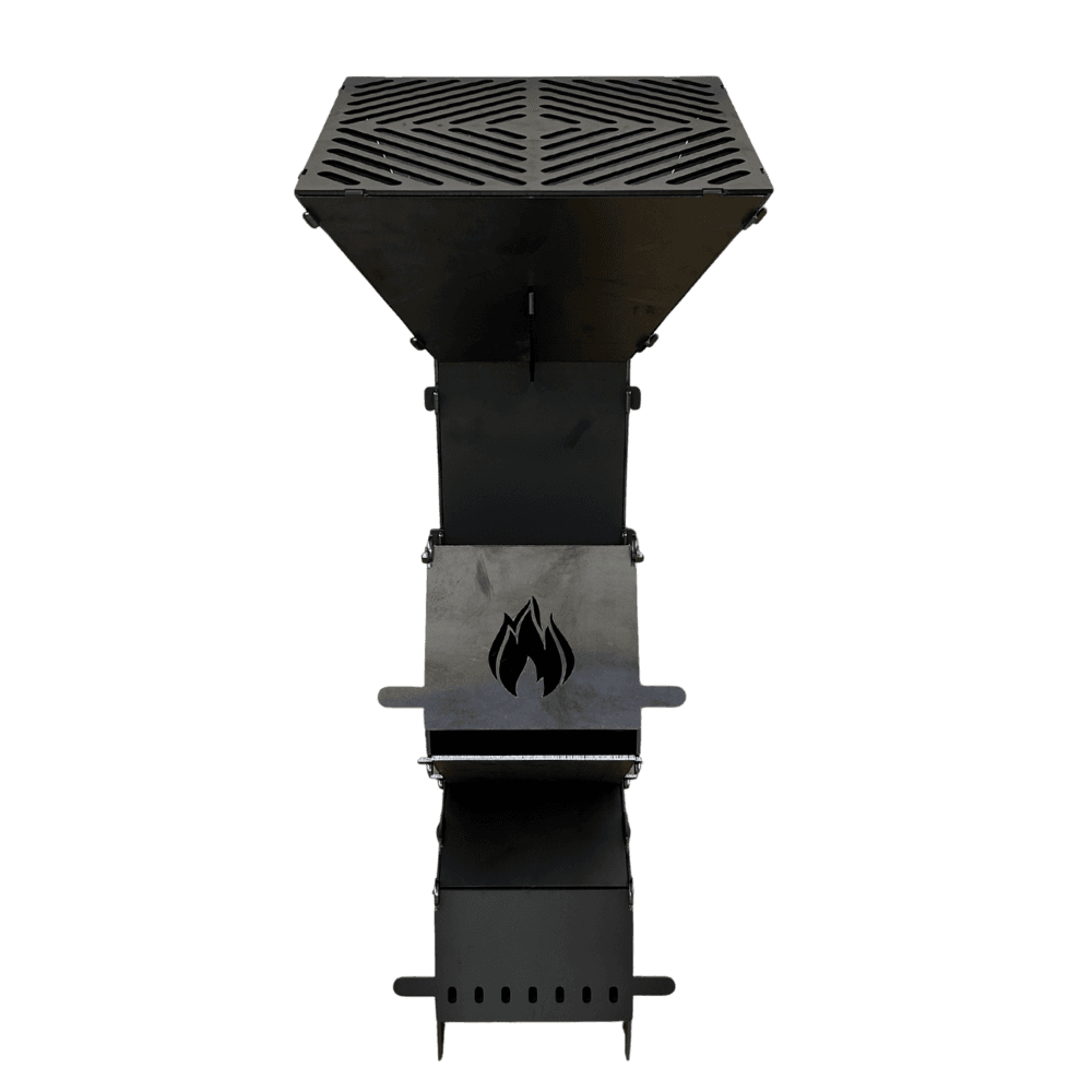 A rakétakályha egyik legnagyobb előnye az energiahatékonysága. A különleges égéstér-kialakításnak köszönhetően a fa teljes mértékben elég, miközben gyorsan és egyenletesen adja le a hőt. A tűzlogós kivágás nemcsak egyedi és látványos díszítőelem, hanem a levegőáramlás javításával még hatékonyabb égést biztosít. Ennek köszönhetően a kültéri főzőeszköz minimális füstöt termel, így környezetbarát megoldást kínál azoknak, akik fenntarthatóbb alternatívát keresnek.
